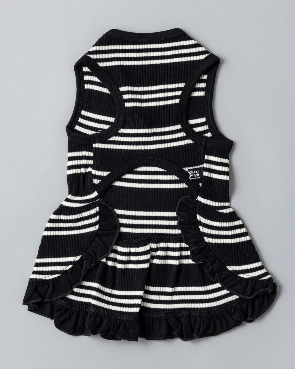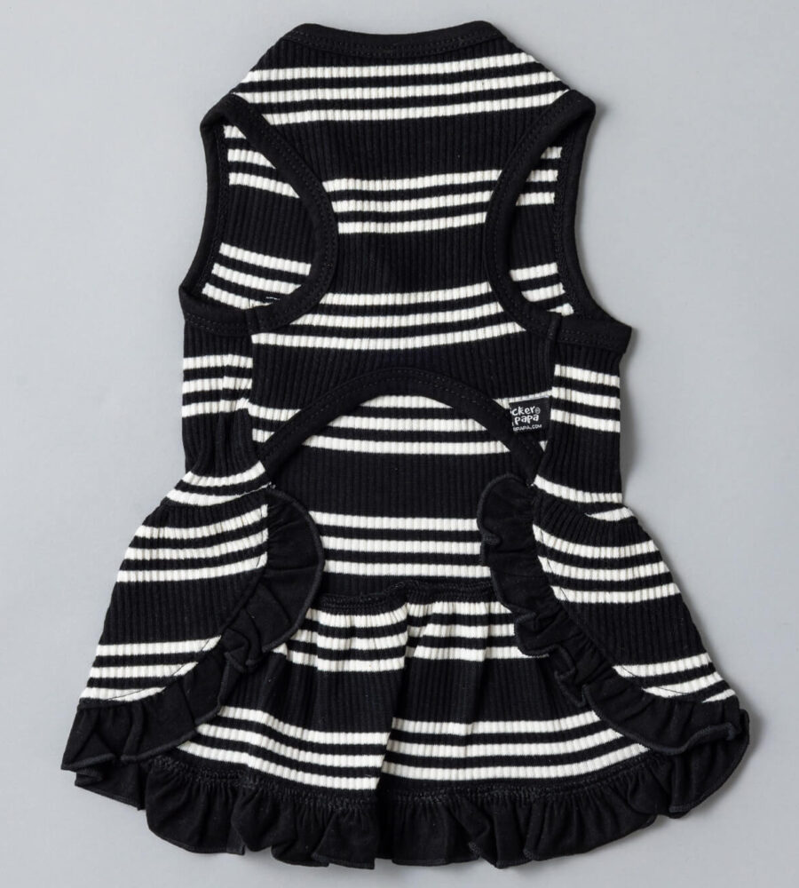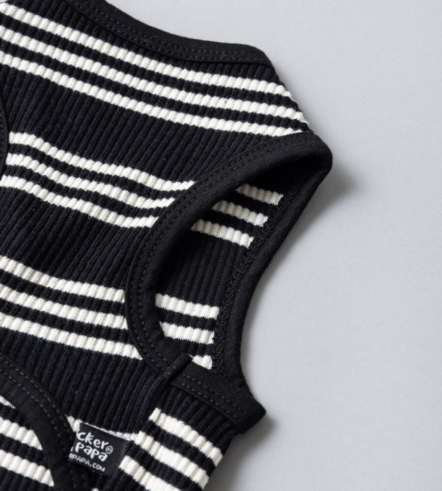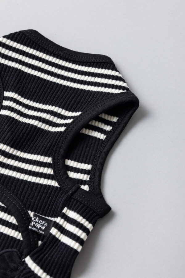 上品でモノトーンなボーダー柄が映えるワンピース風タンク。