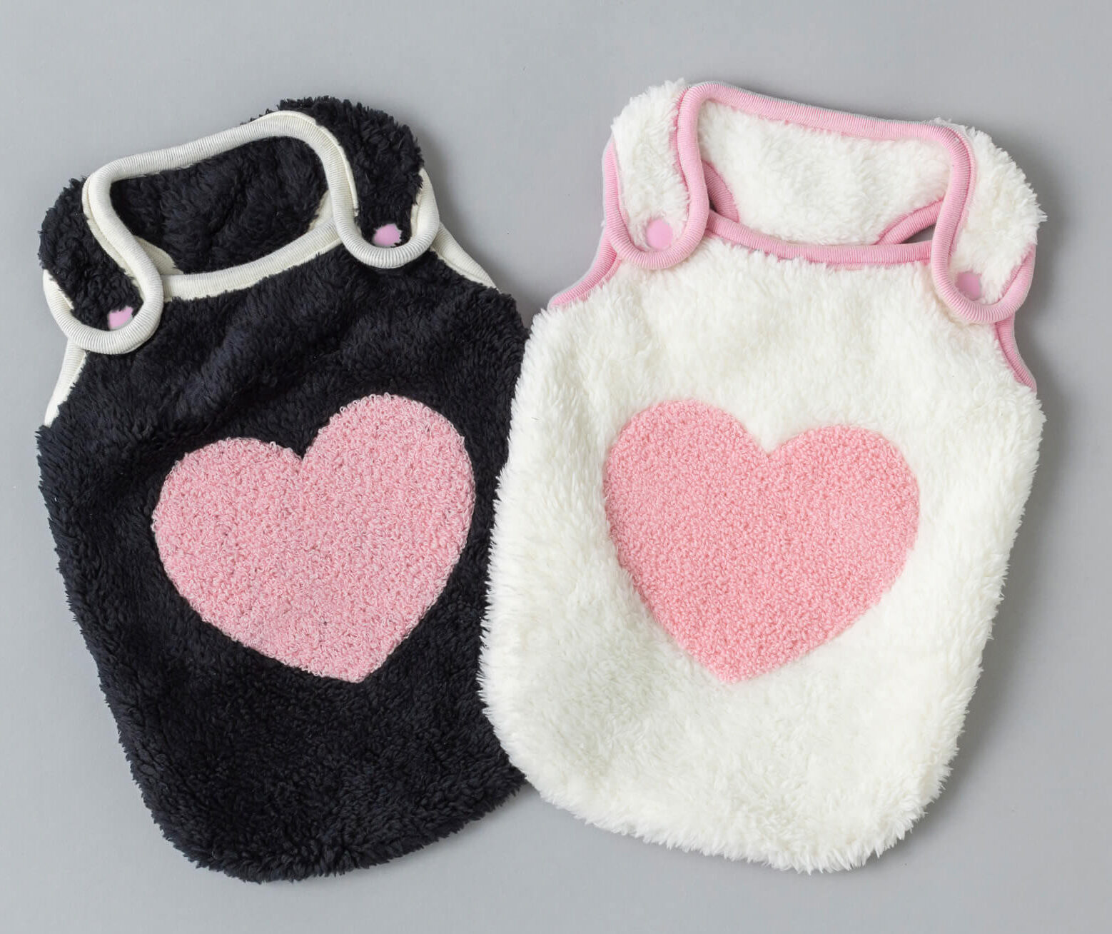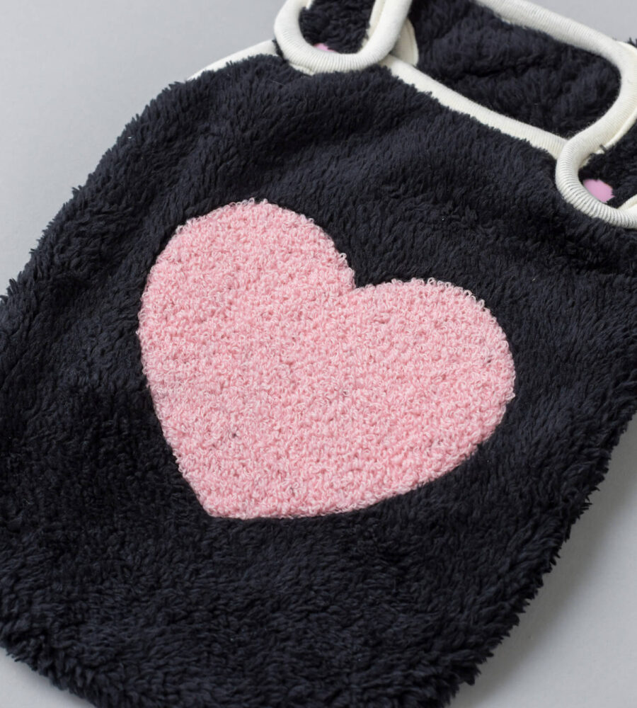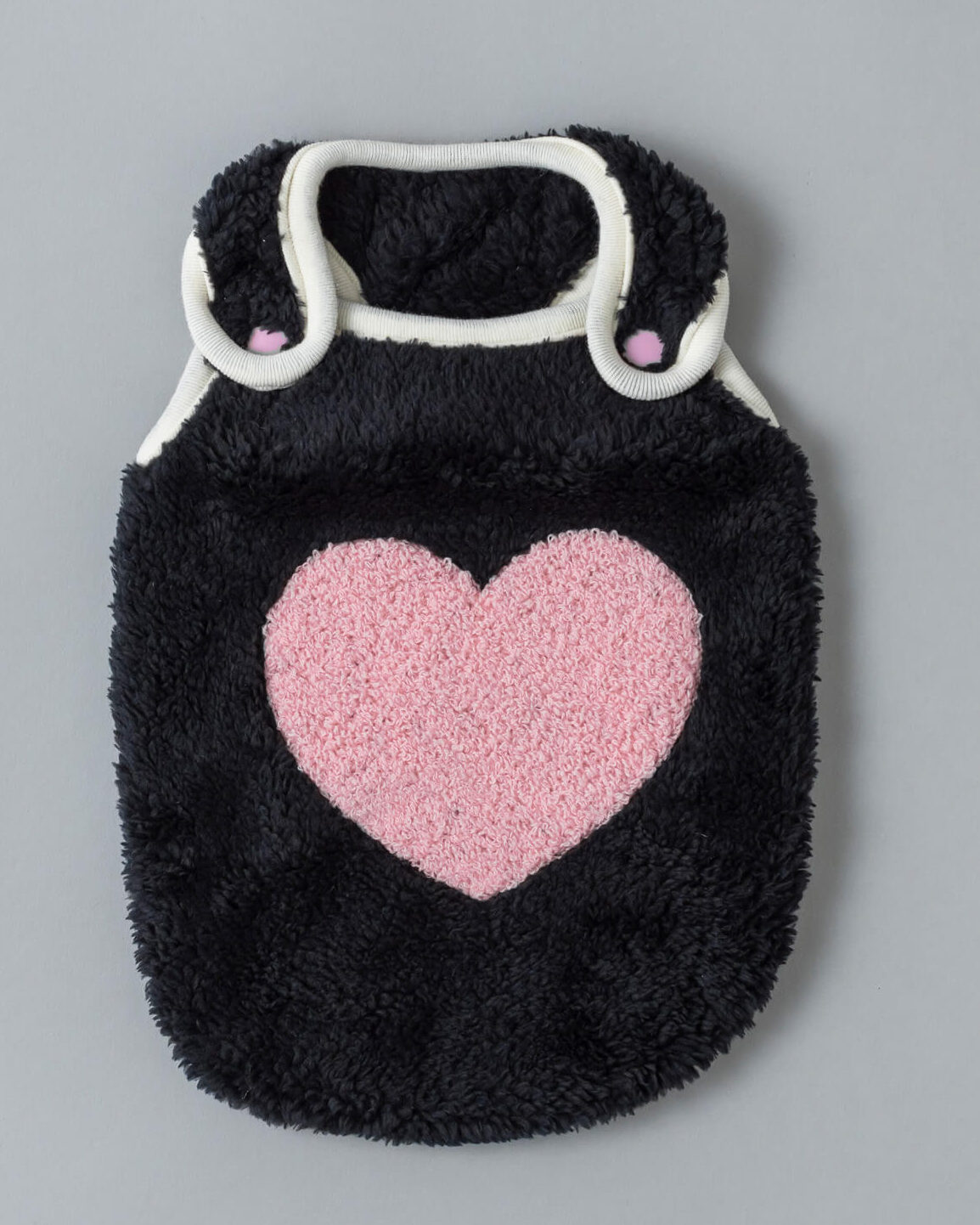 ふんわりとしたボア素材に、大きなピンクのハートが目を惹くデザイン。