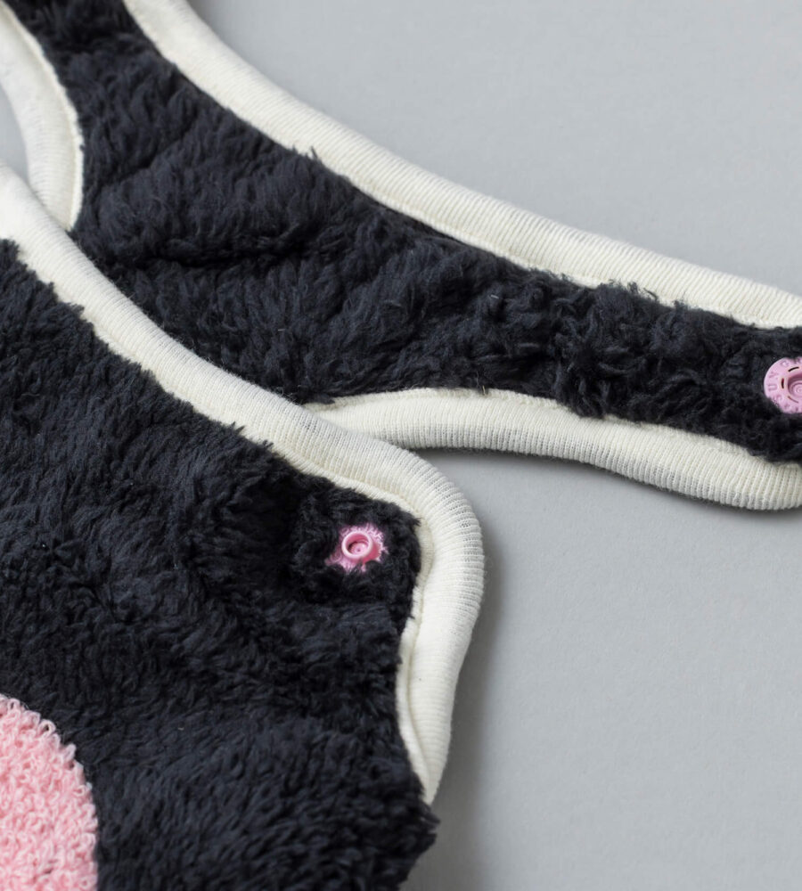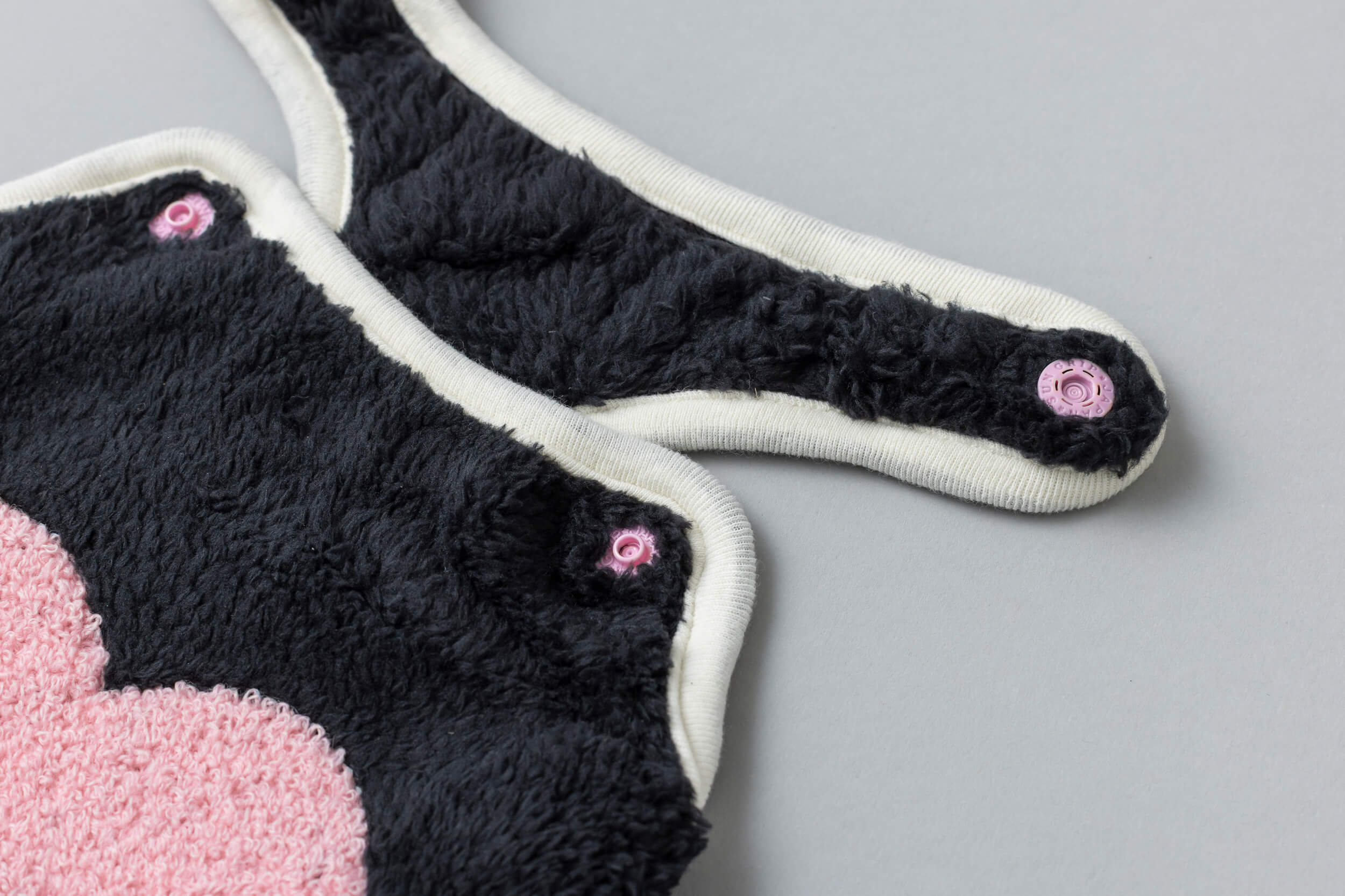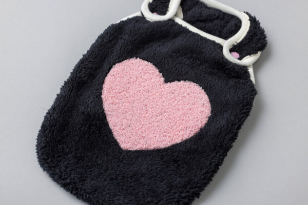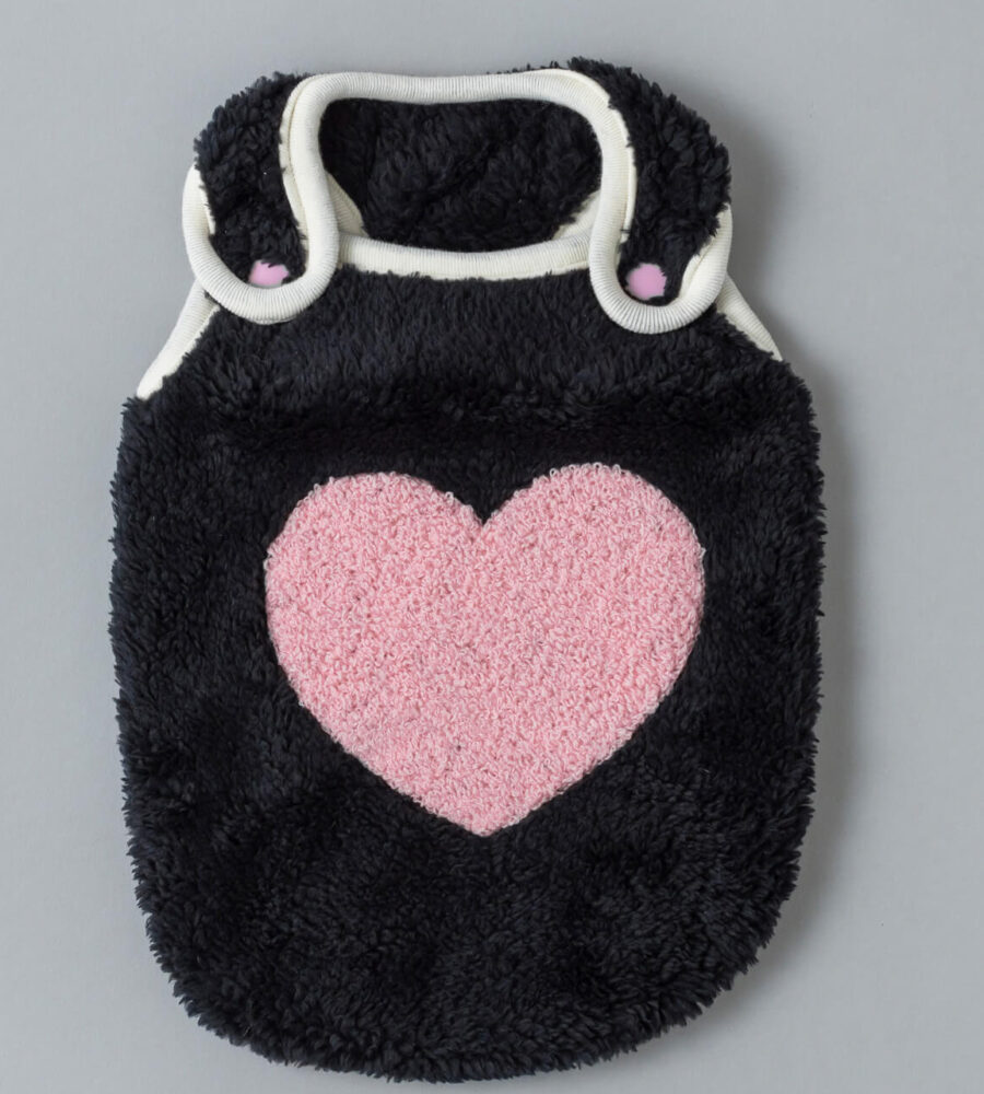 ふんわりとしたボア素材に、大きなピンクのハートが目を惹くデザイン。