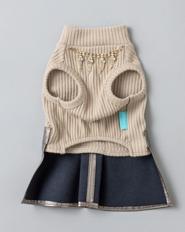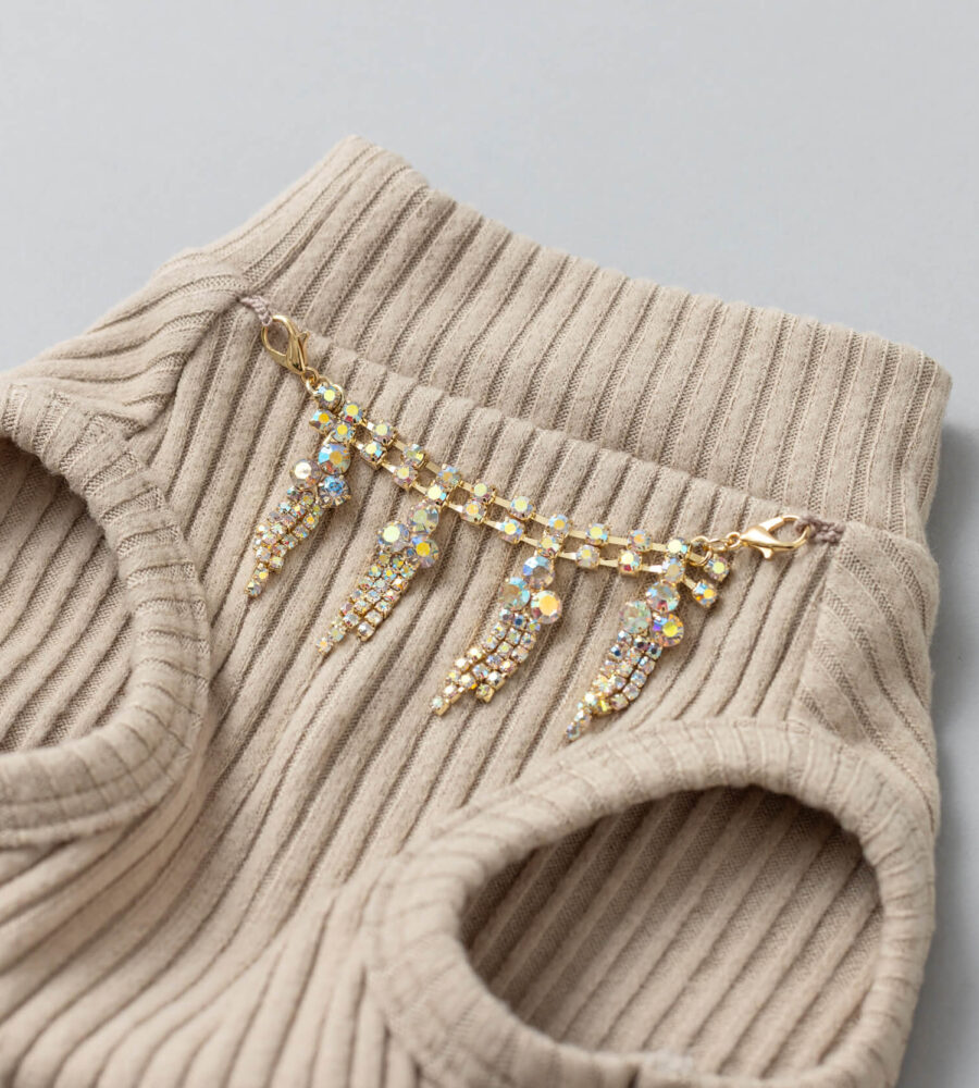 首元にはストーンチャームが輝き、特別な日のお出かけにもぴったりです。
