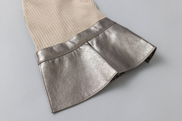 高級感あふれるリブニットとメタリックレザーを組み合わせた秋冬にぴったりの