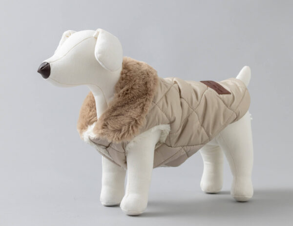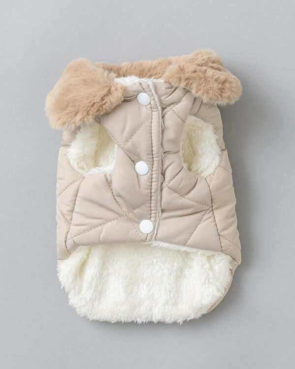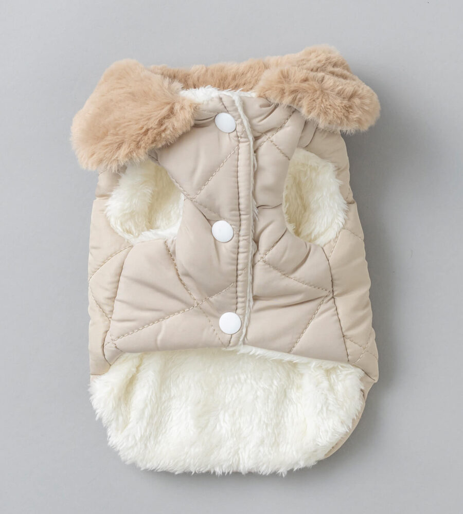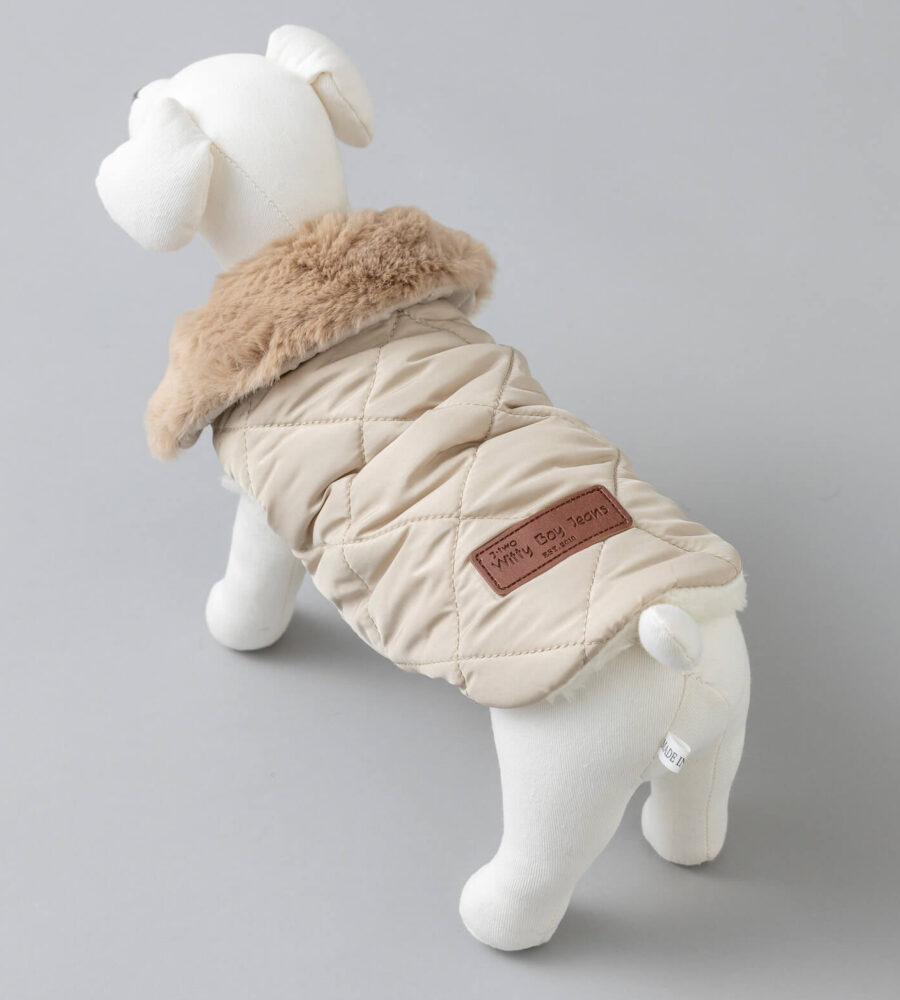 上品なベージュカラーにふわふわのファーをあしらった、冬の定番おしゃれベスト。